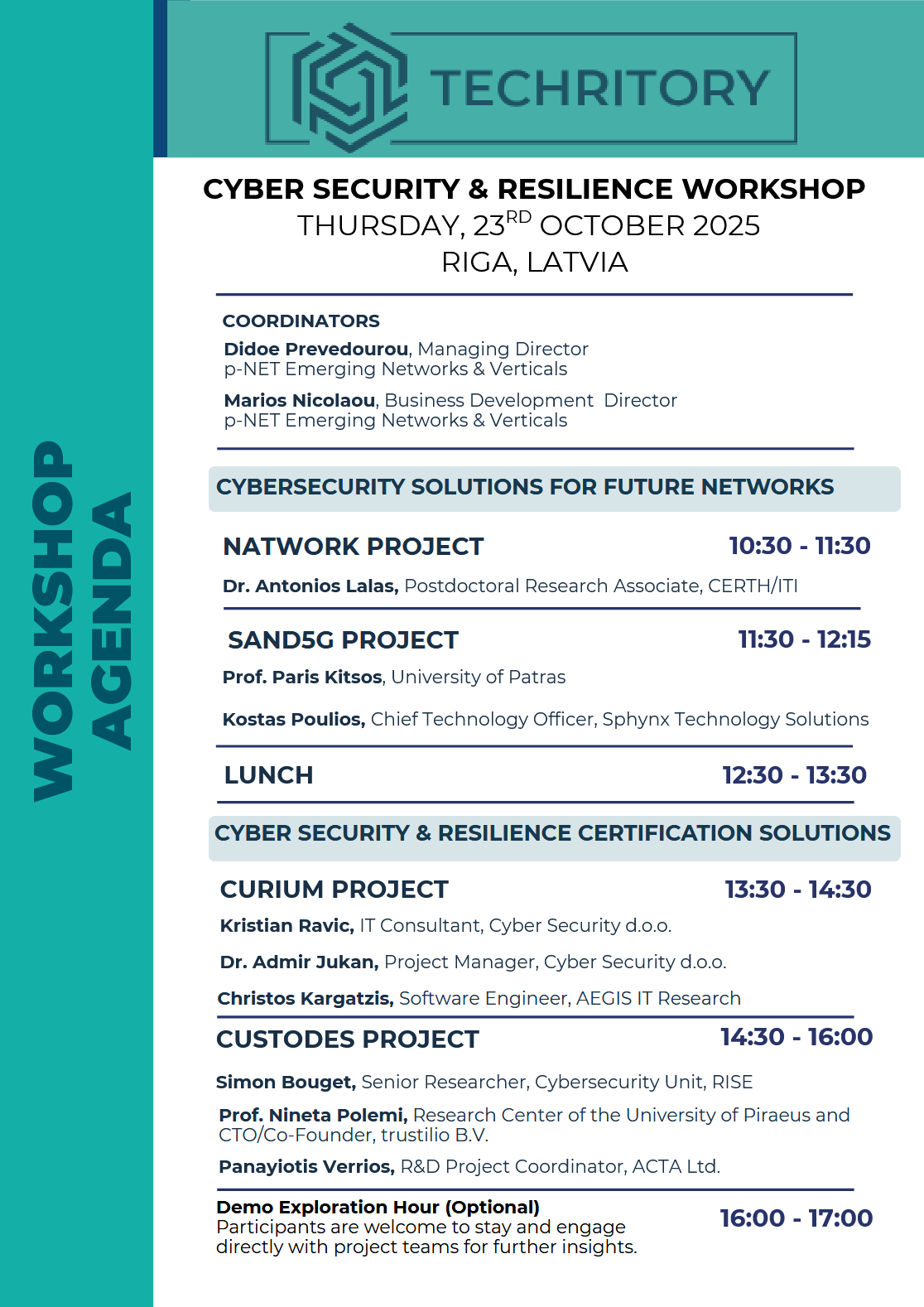 The Techritory Forum, in collaboration with p-NET Emerging Networks & Verticals, will host a co-creation workshop at the 2025 event, which will be held in Riga, Latvia, focusing on Cyber Security and Resilience of Telecom Applications and Networks.