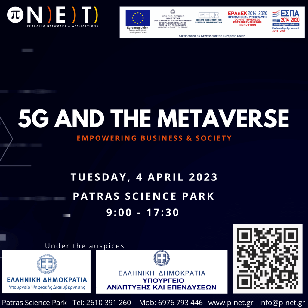 Past Events Posted by p-NET 30/05/2024 1 min read Regional Growth Conference 2024 Past Events Read More Posted by p-NET 27/11/2023 1 min read p-NET at Patras IQ 2023: Showcasing Innovation and Collaboration Past Events Read More Posted by p-NET 25/10/2023 5 min read 5G and GovTech Workshop: Addressing Innovation Challenges & Opportunities for Government, Business & Society in Greece Past Events Read More Posted by p-NET 05/04/2023 50 min read 5G and the Metaverse: Empowering Business & Society Past Events Read More 12